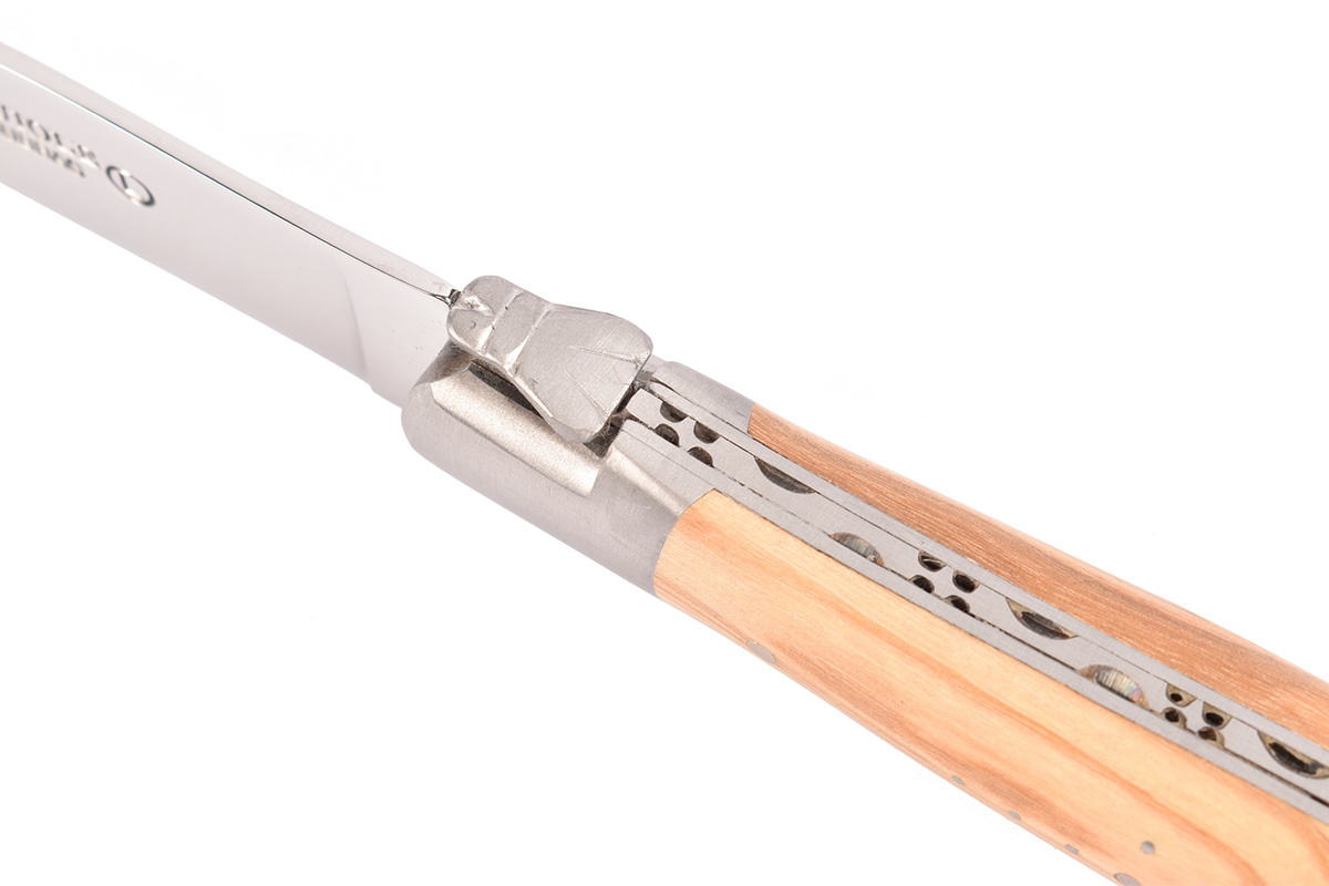 Laguiole en Aubrac zijn klassevolle handgemaakte messen met zeer veel oog voor detail. De messen zijn gemaakt volgens eeuwenoude traditie en authentiek vakmanschap. Om de authenticiteit van het mes te verzekeren is de rug voorzien van het typische kenmerkend Laguiole bijtje en het herderskruis in de handgreep.