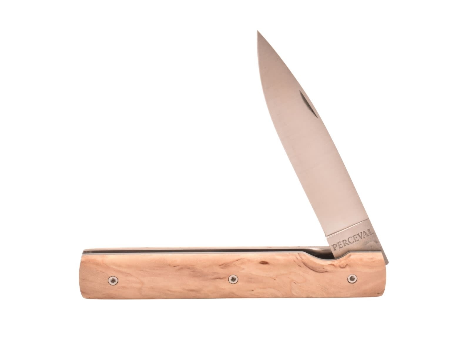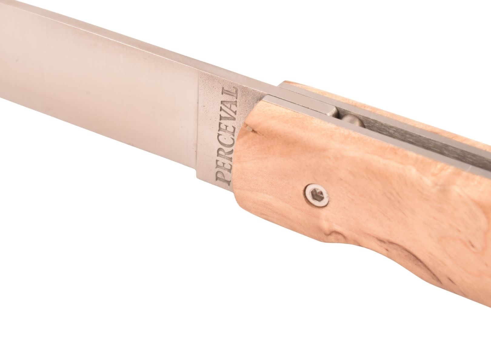Een prachtig zakmes uit Frankrijk, gemaakt door Perceval. Dit ambachtelijk mes van zeer goede kwaliteit is afgewerkt met een prachtig handvat in berk.