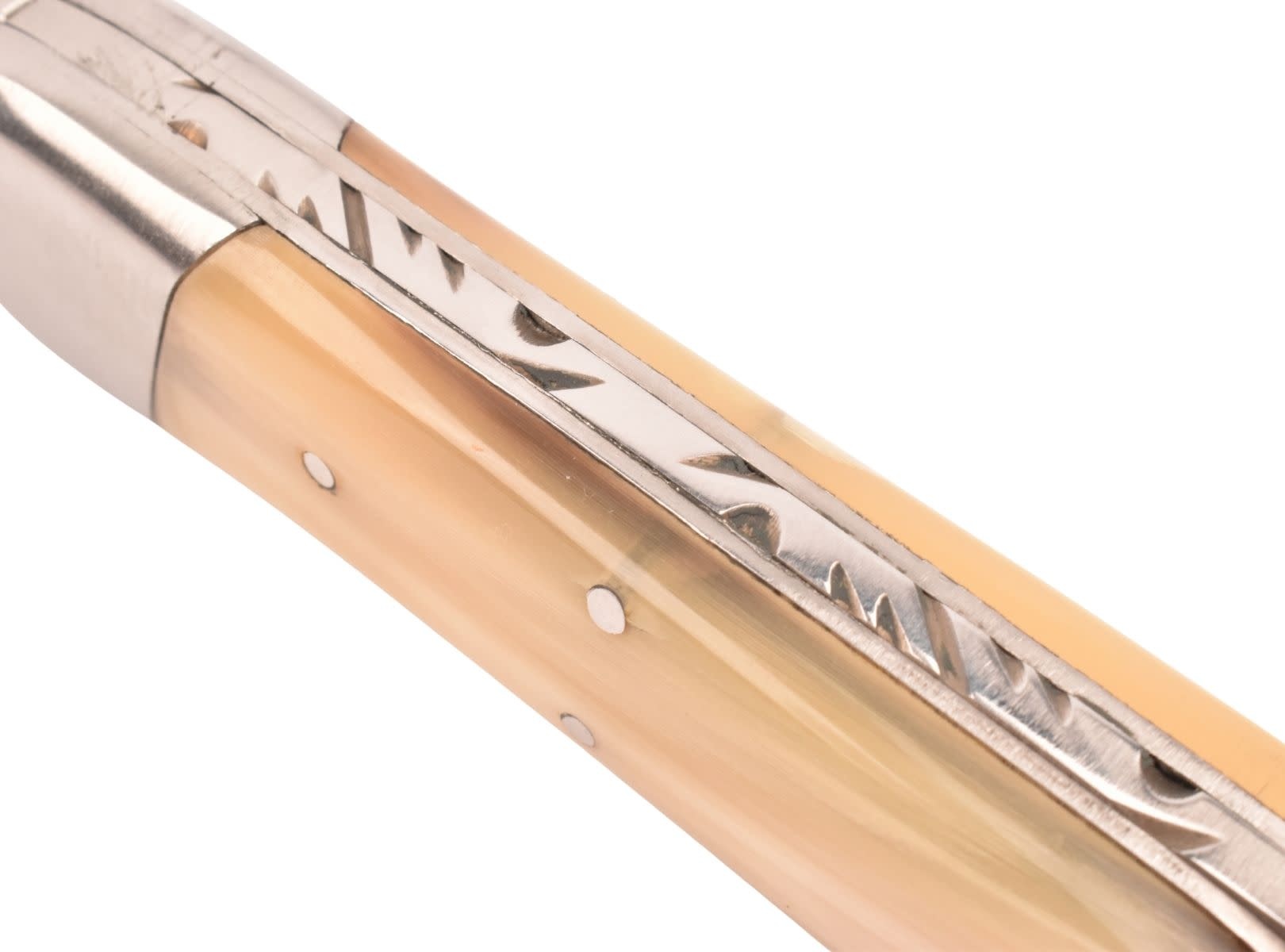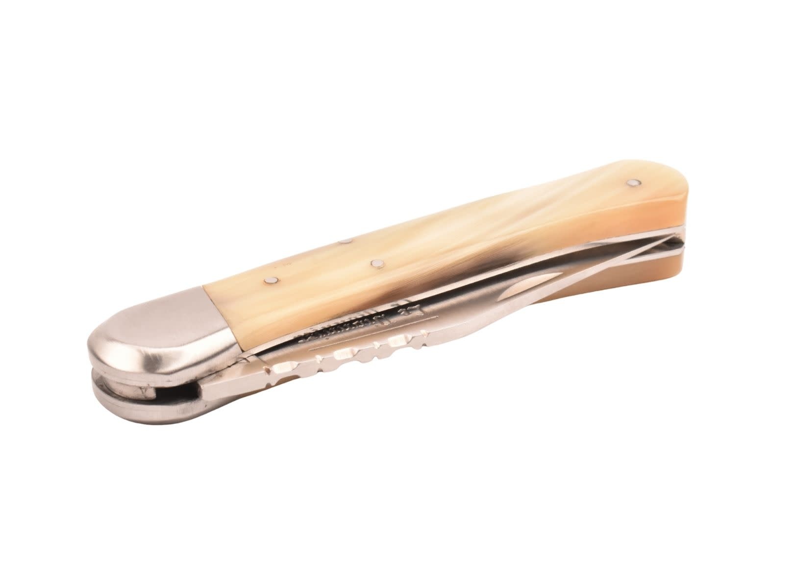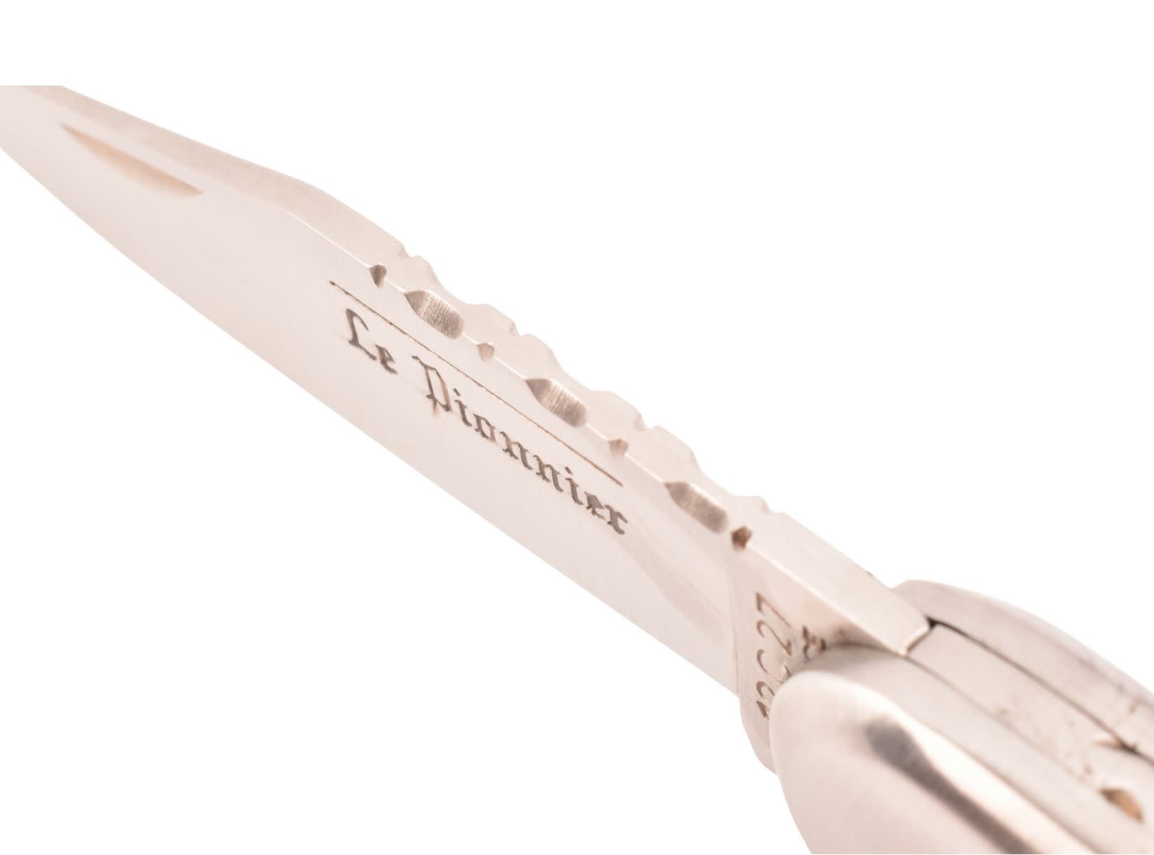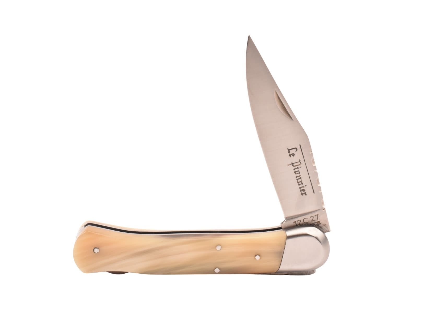 Dit is een vergrote en uitgebreidere versie van het klassieke Pionnier-zakmes. Le Pionnier (De Pionier) werd gelanceerd in de jaren 70 en is het vlaggenschipmodel van het merk Douris Chastel. Le Pionnier wist zijn publiek meteen te verleiden met zijn lemmet in de vorm van een salieblad, zijn versierde bolster en zijn bolle handvat. Deze geven het mes een stijl die diep geworteld is in traditie en overdracht.