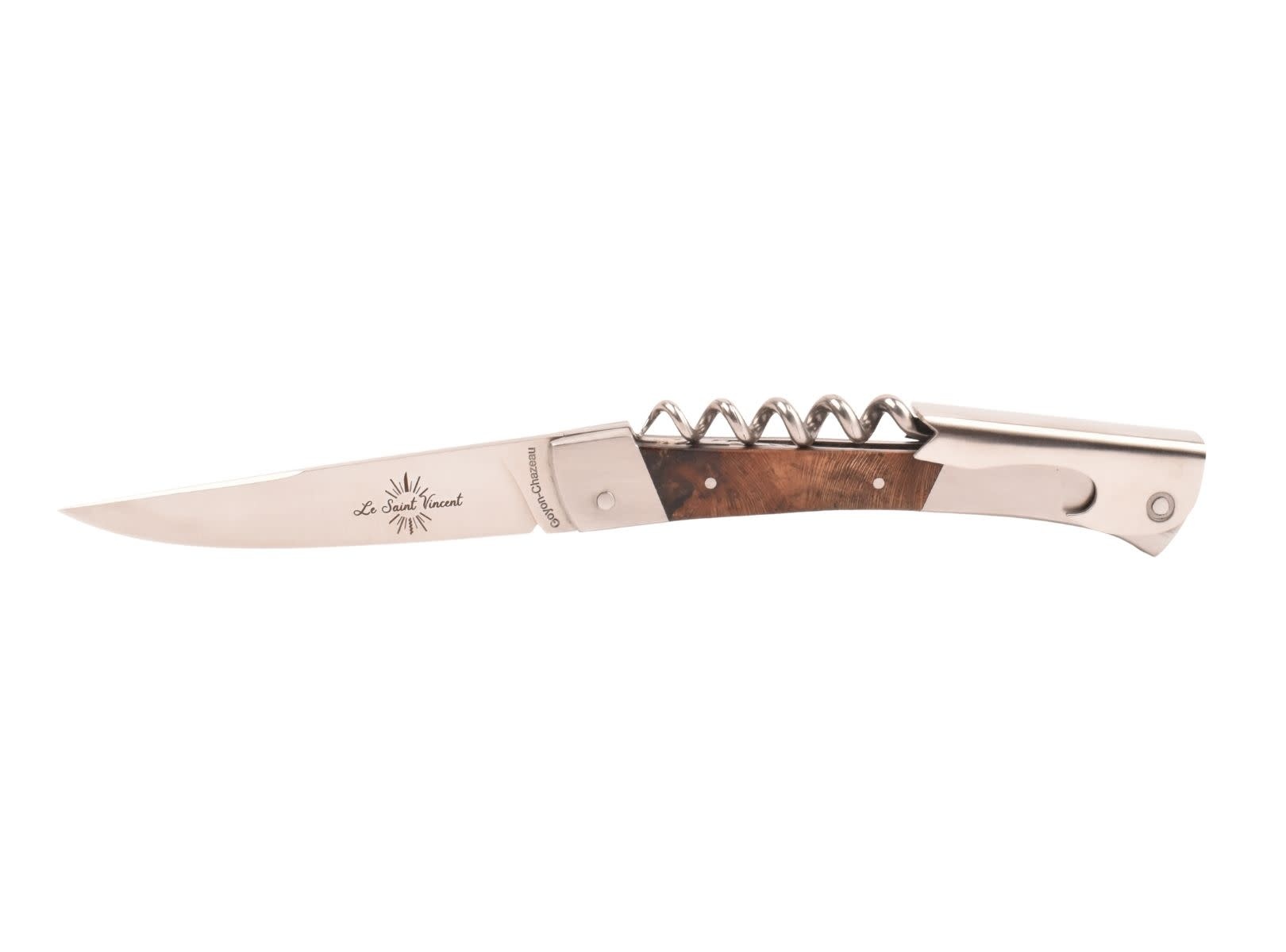 Beschermheilige van de wijnbouwers, St. Vincent is ook de naam die Goyon-Chazeau aan dit wijnopenermes gaf. Dit mes is even handig voor het snijden van allerhande zaken als voor proeverijen op wijnbeurzen of avonden tussen wijnliefhebbers!