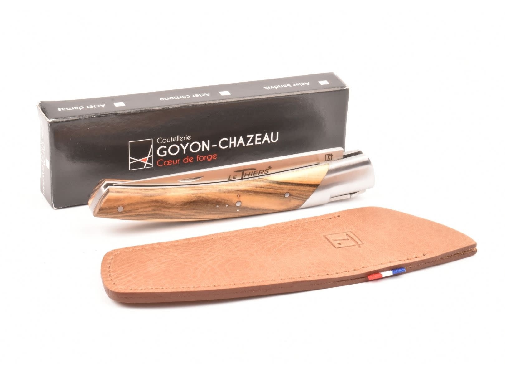 Het zakmes Le Thiers Pirou met een lemmet van 12 cm van Goyon-Chazeau zal liefhebbers van zakmessen bekoren. De bij is voorzien van het keurmerk "Château du Pirou". voorzien van het keurmerk "Château du Pirou". Het kasteel van Pirou dat op de gulp staat afgebeeld, is een knipoog naar het oudste gebouw van de stad Thiers en naar de 7 eeuwen die haar geschiedenis en bestekerfgoed hebben opgebouwd. Dit merk is een creatie en exclusiviteit van Goyon-Chazeau.