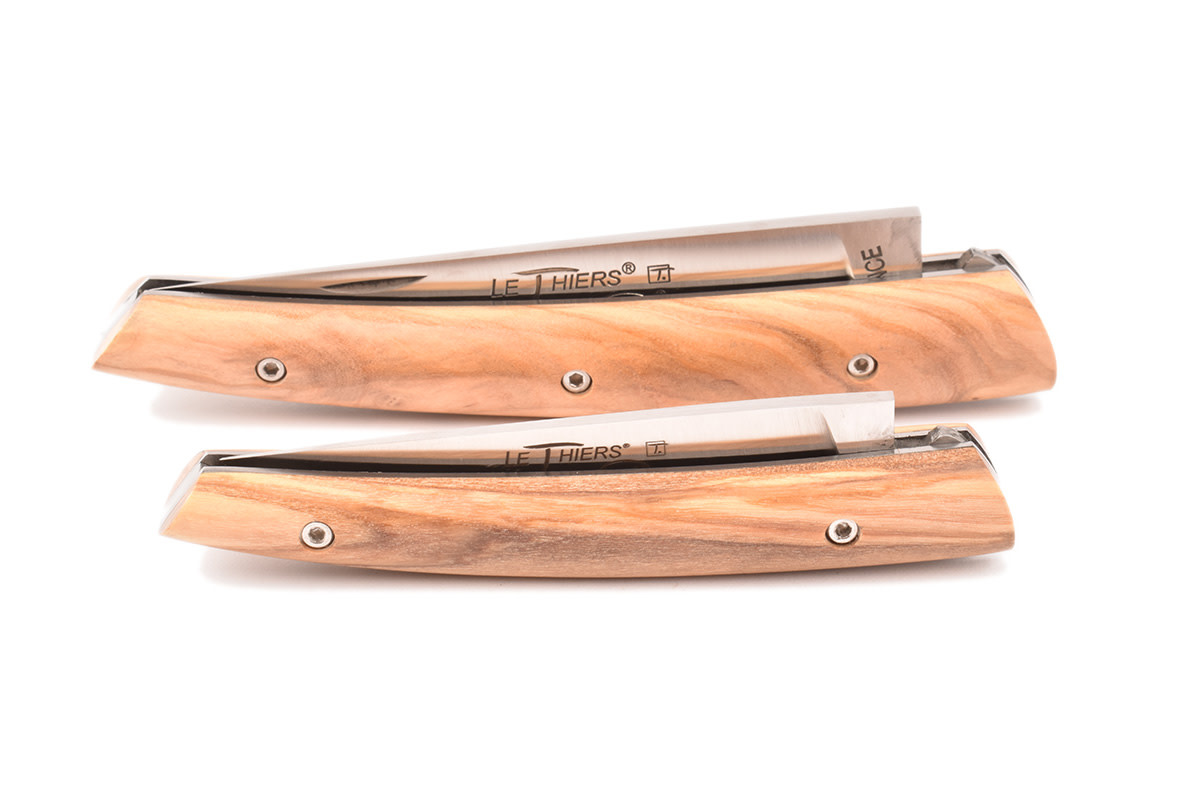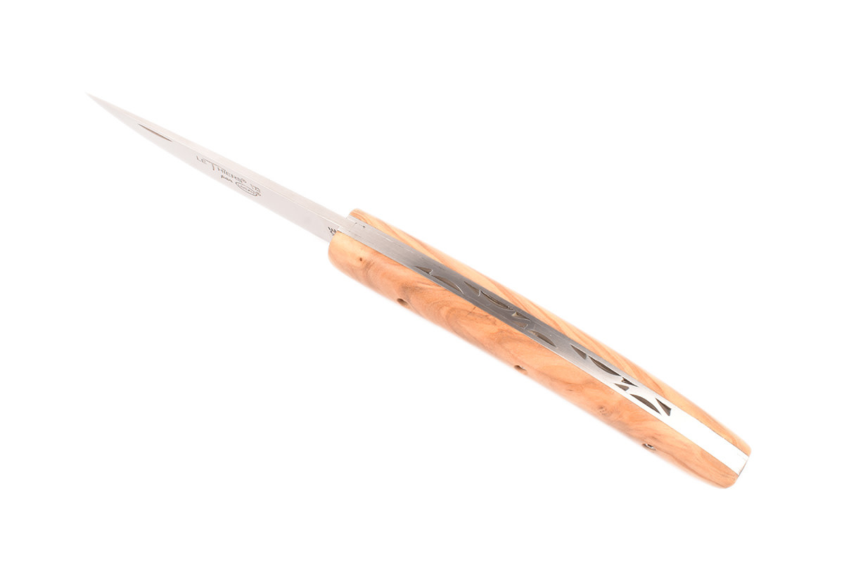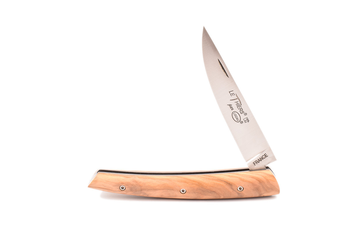 Een prachtig Le Thiers® zak/plooimes gemaakt in Frankrijk, ontworpen door Locau. Dit ambachtelijk mes van zeer goede kwaliteit is afgewerkt met een prachtig handvat in olijfhout.