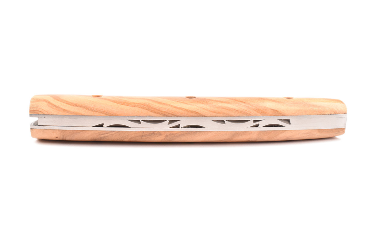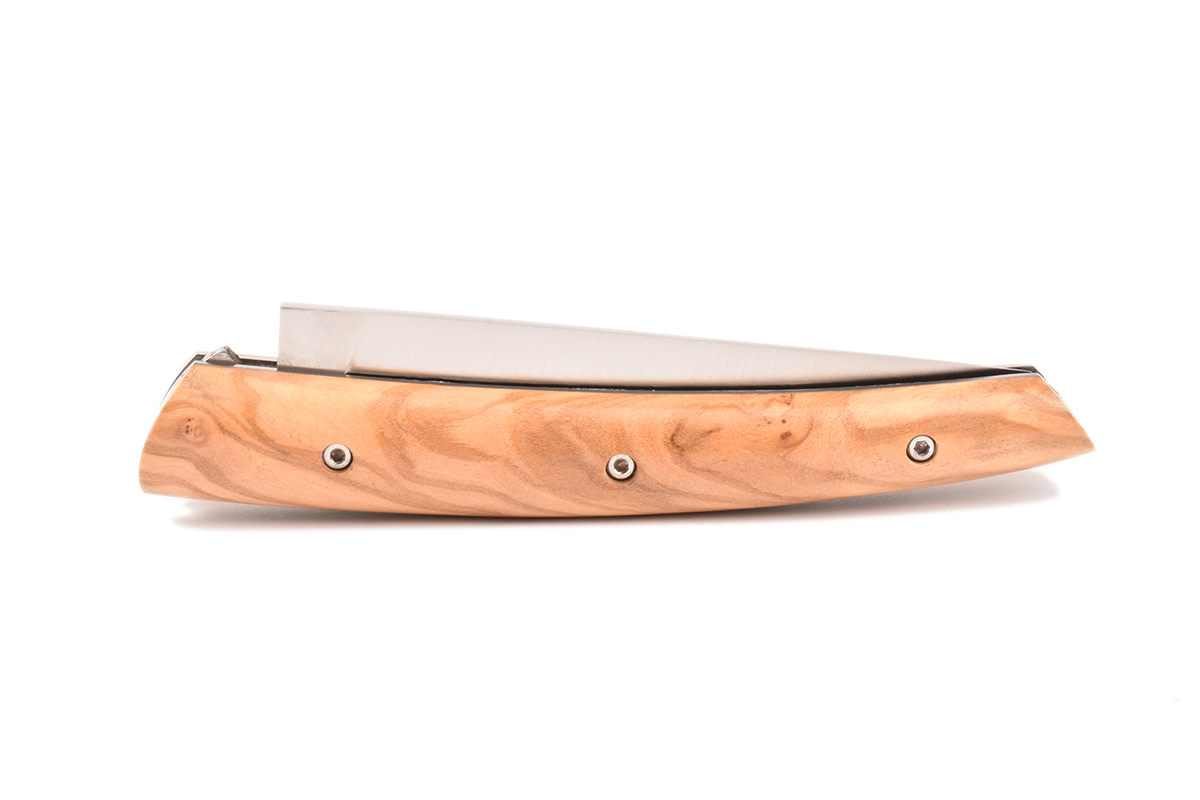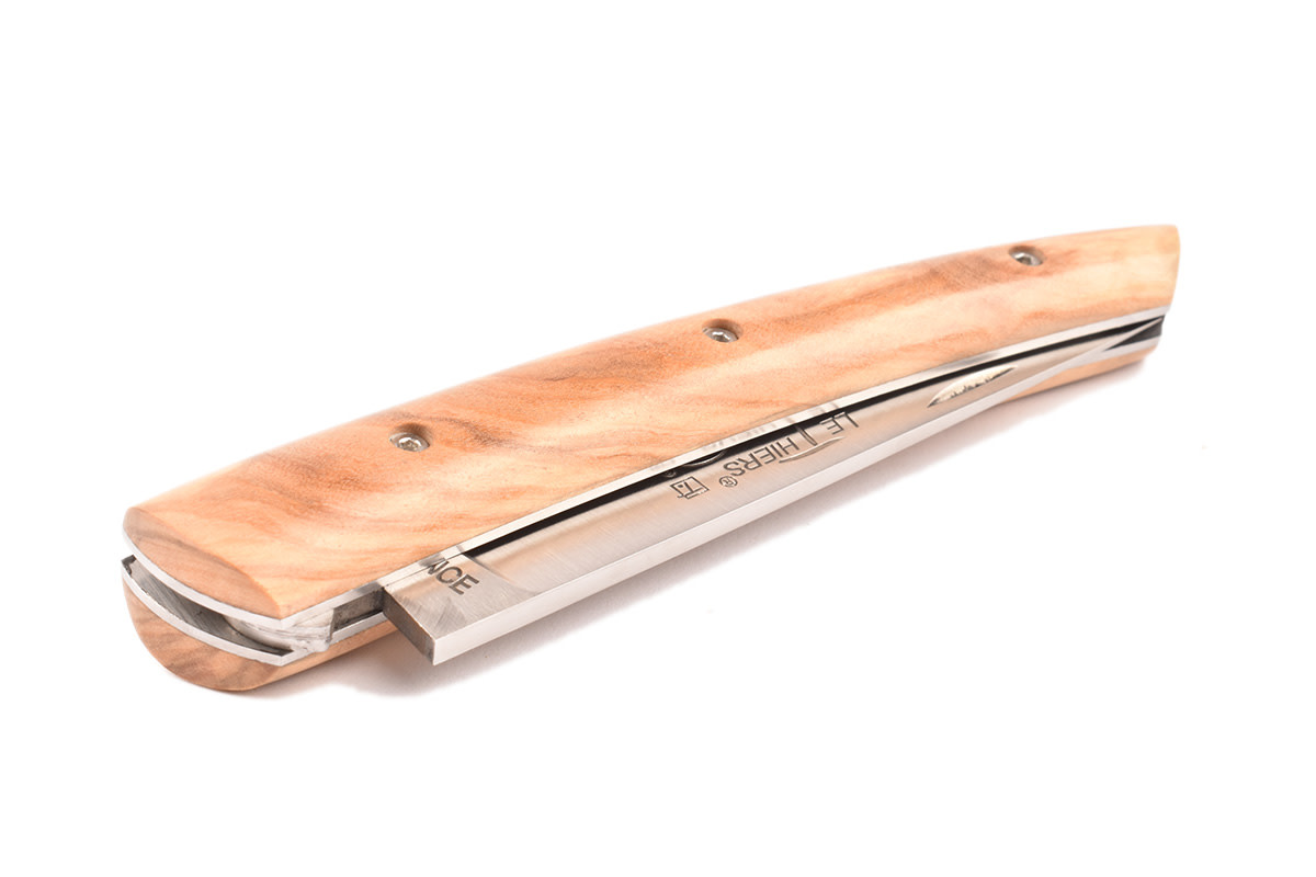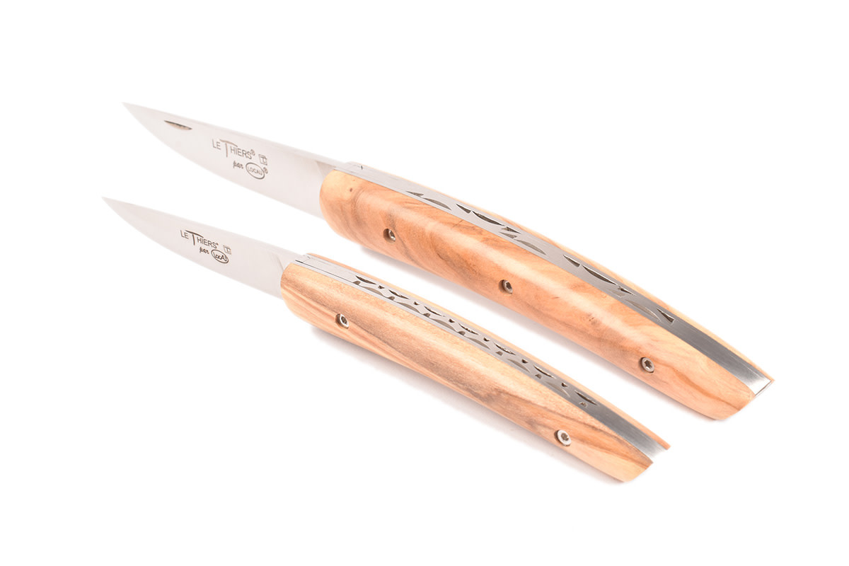 Een prachtig Le Thiers® zak/plooimes gemaakt in Frankrijk, ontworpen door Locau. Dit ambachtelijk mes van zeer goede kwaliteit is afgewerkt met een prachtig handvat in olijfhout.