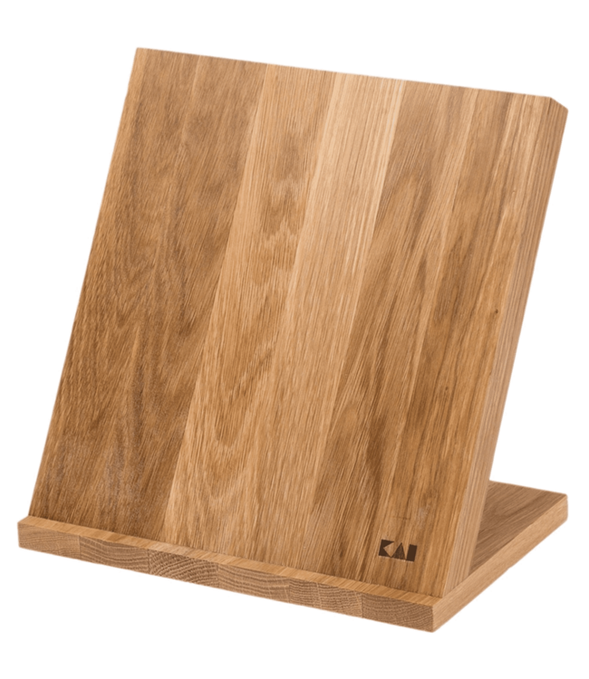 Prachtige magnetische messenblok uit eikenhout van Kai. Op deze messenblok kan je je Kai keukenmessen niet alleen kwijt, je kan ze ook steeds bewonderen wanneer je wil. Werkt uiteraard ook voor al je andere keukenmessen. De messenblok is geschikt voor 5 messen.