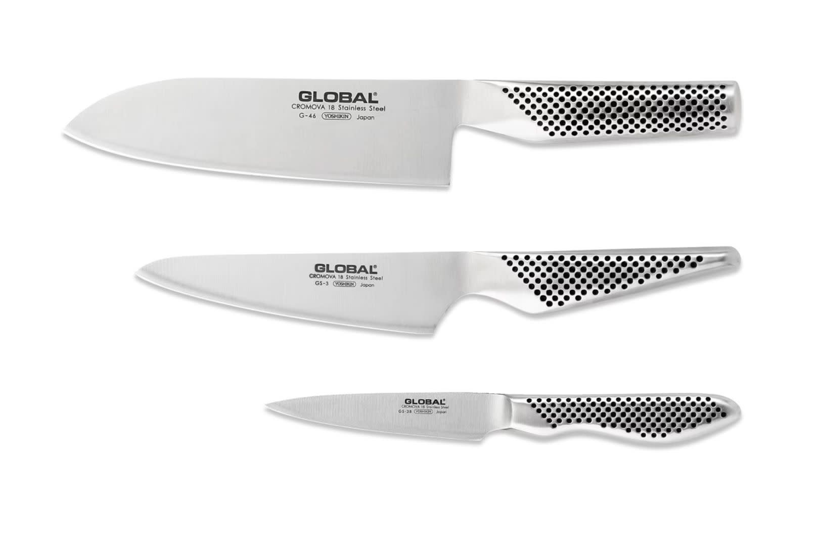 Global 3-delige koksmessenset met G46 santoku 18cm, GS3 klein koksmes en GS38 officemes