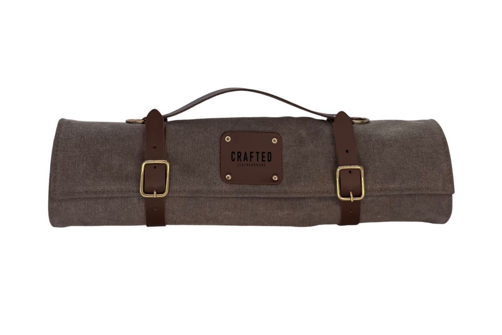 Crafted messentas - leder/canvas grijs - voor 7 messen