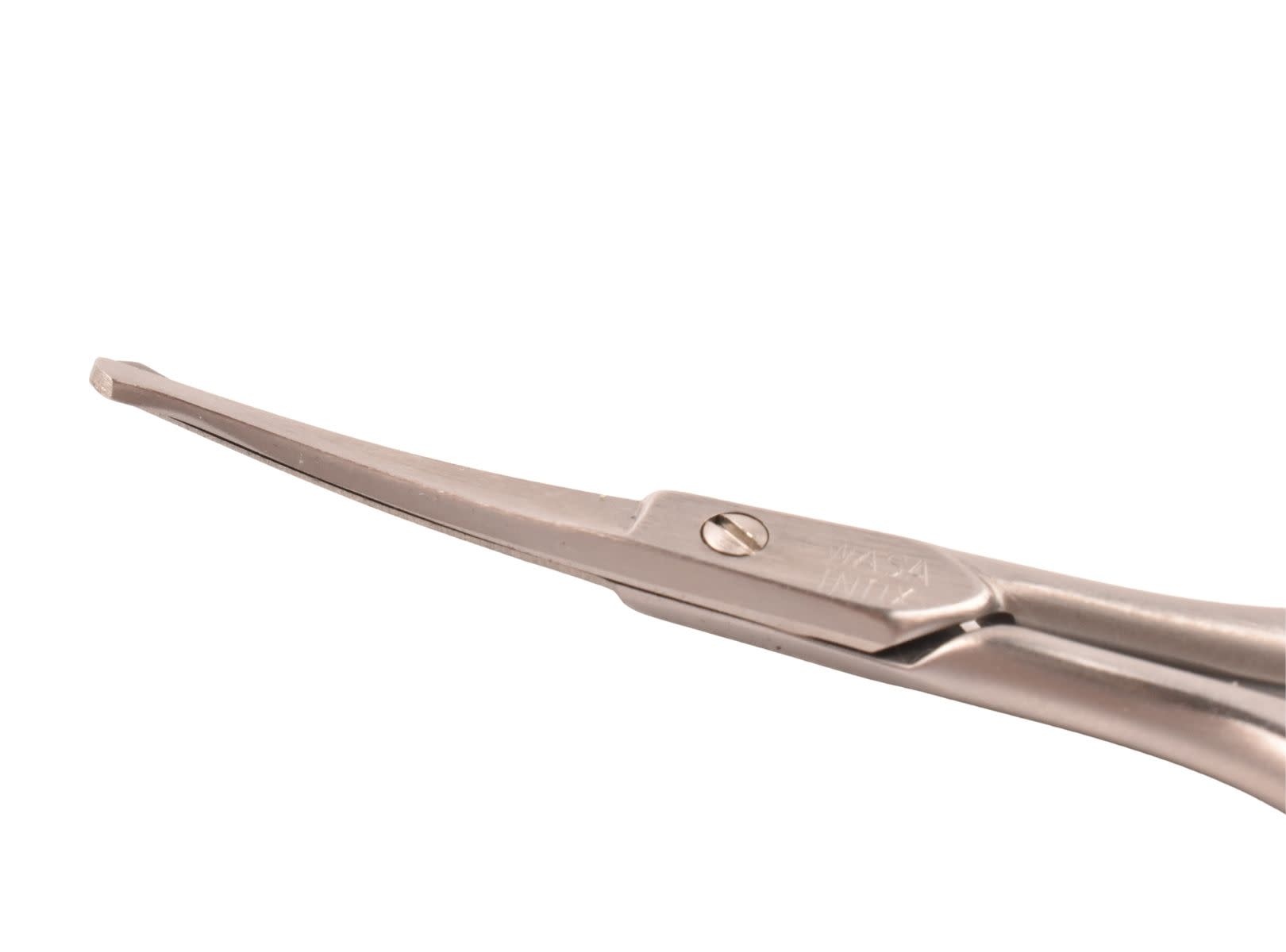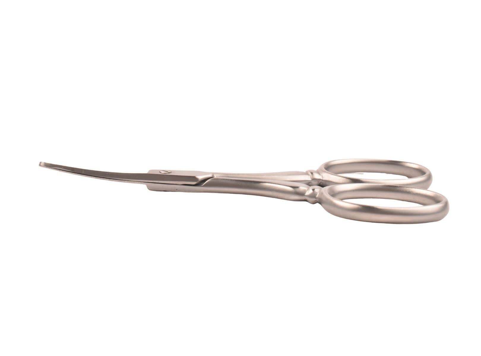 Deze schaar in roestvrij staal uitvoering, is klein en gebogen.