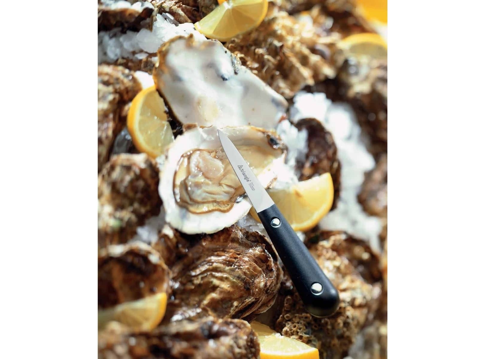 Maak kennis met het professionele oestermes van Triangle, uw onmisbare partner voor het moeiteloos openen van oesters zonder gruis.