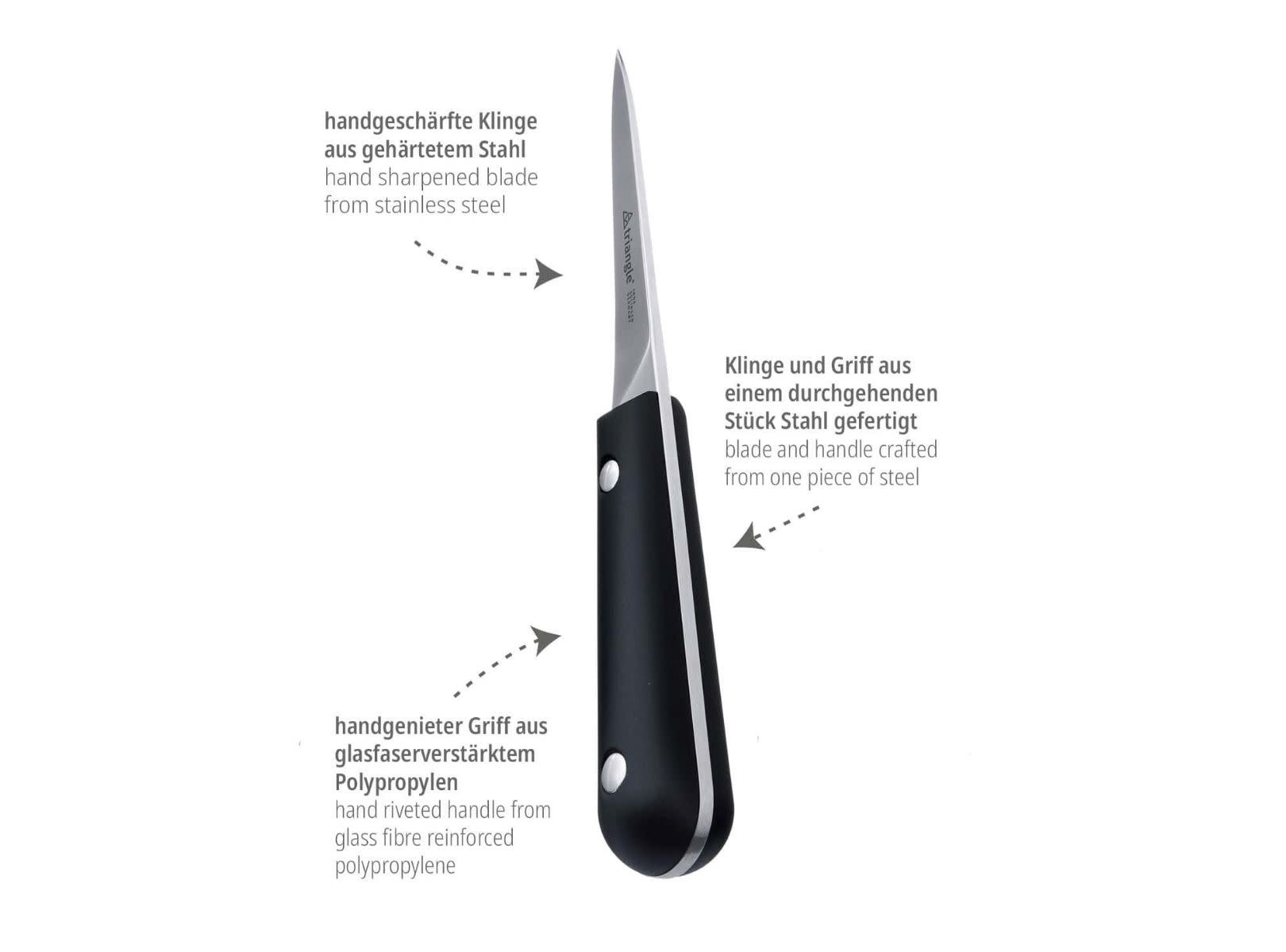 Met zijn robuuste handvat, versterkt met RVS nieten, en het scherpe roestvrijstalen lemmet, biedt dit mes een uitstekende grip en veiligheid. De zorgvuldige ontwerpen en hoge kwaliteit maken de keukenhulpjes van Triangle een favoriet onder zowel professionele als hobbykoks.