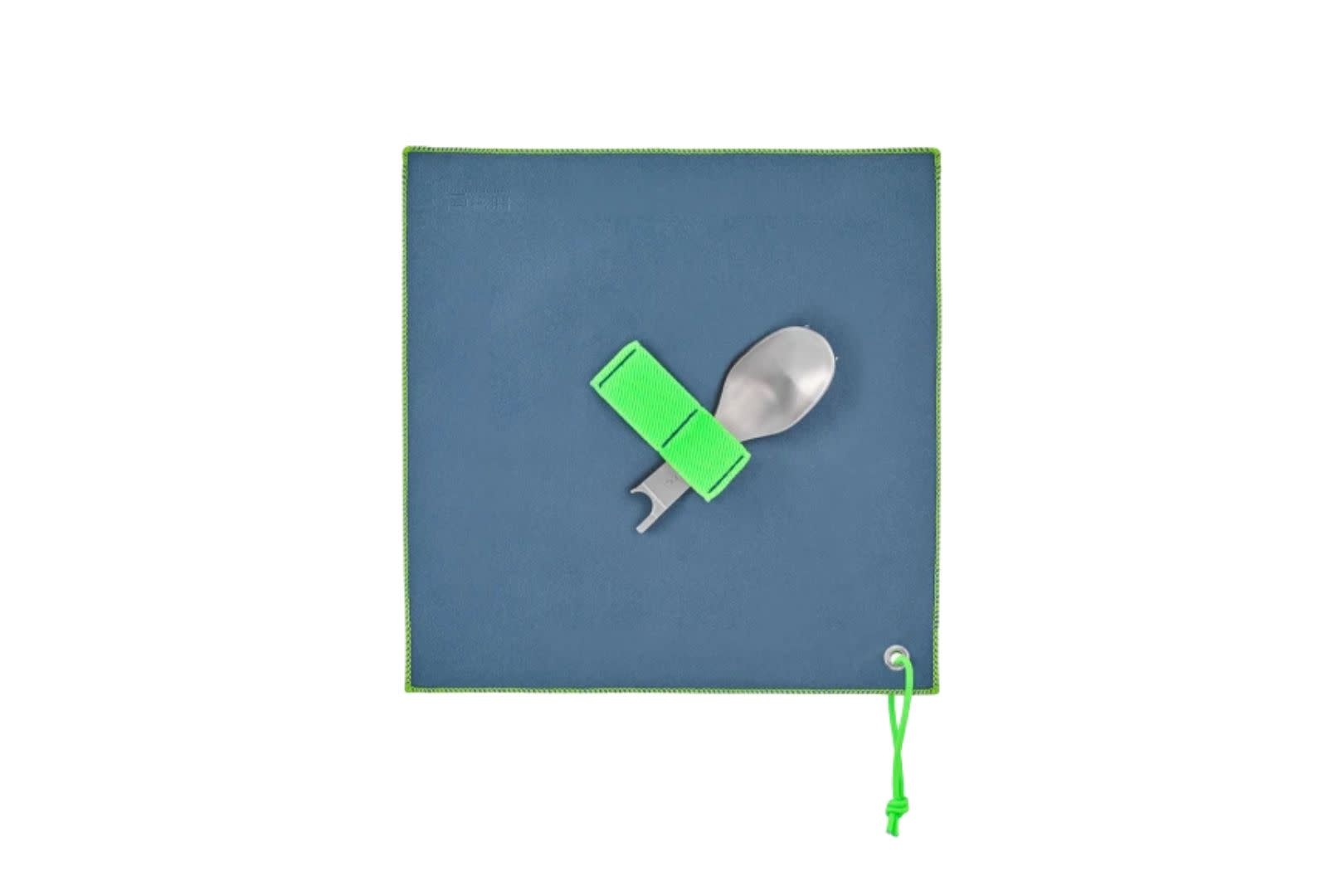 Deze 3-delige Picnic + set bevat een lepel en vork opzetstuk en een microvezel servet.