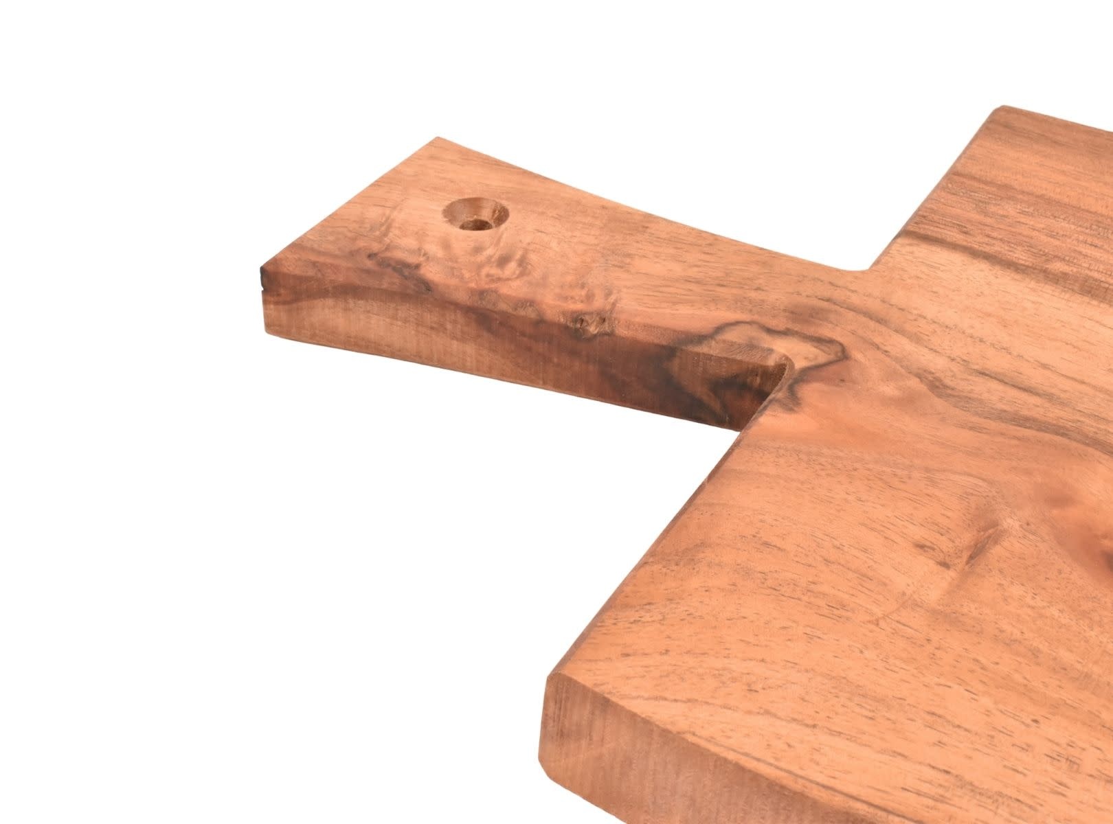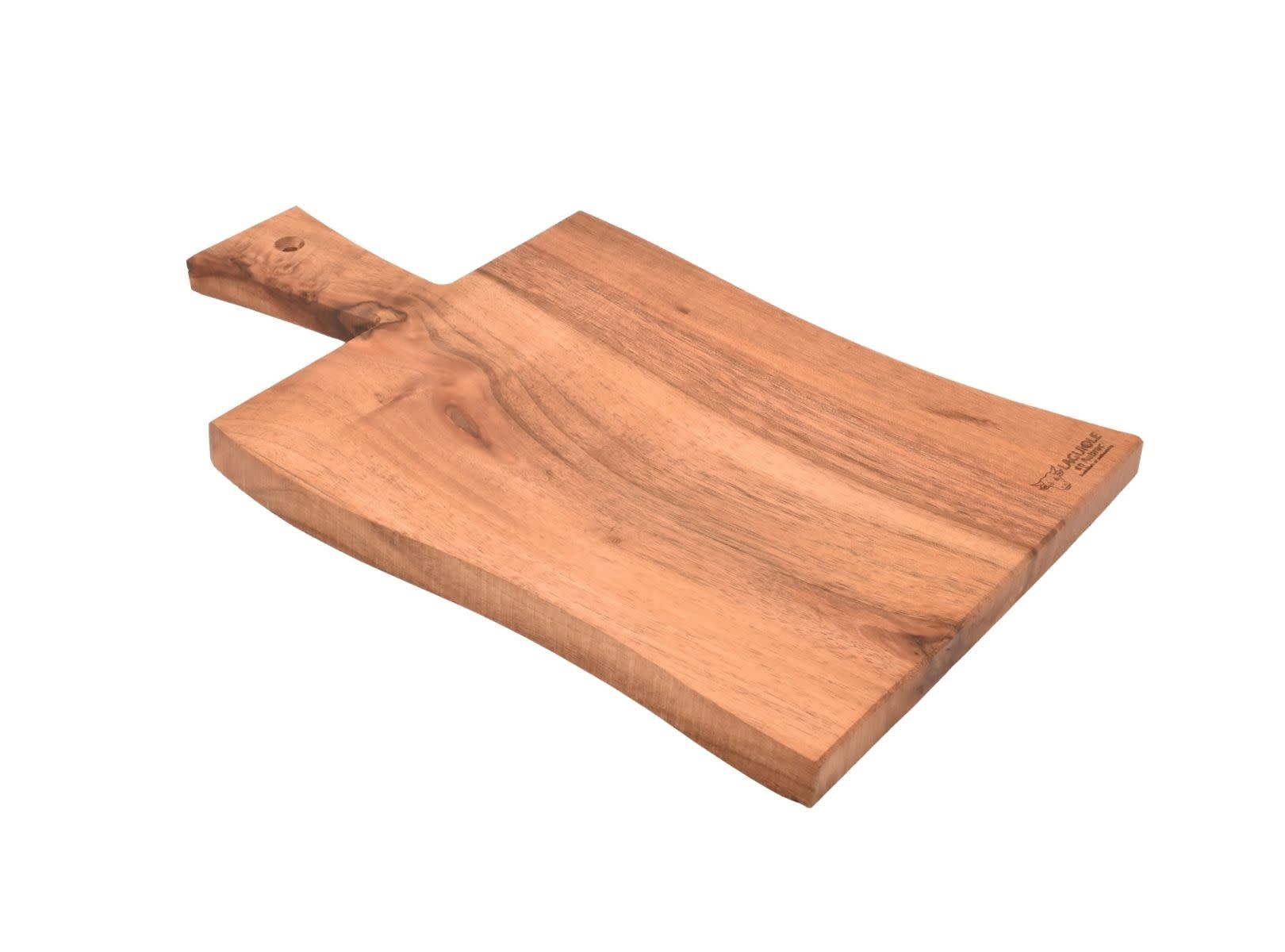 Deze prachtige medium houten plank in notelaar is perfect voor het snijden of serveren van allerhande lekkernijen, zoals kazen, vlees of tapas. Het stevig handvat maakt het makkelijk om de plank te verplaatsen.