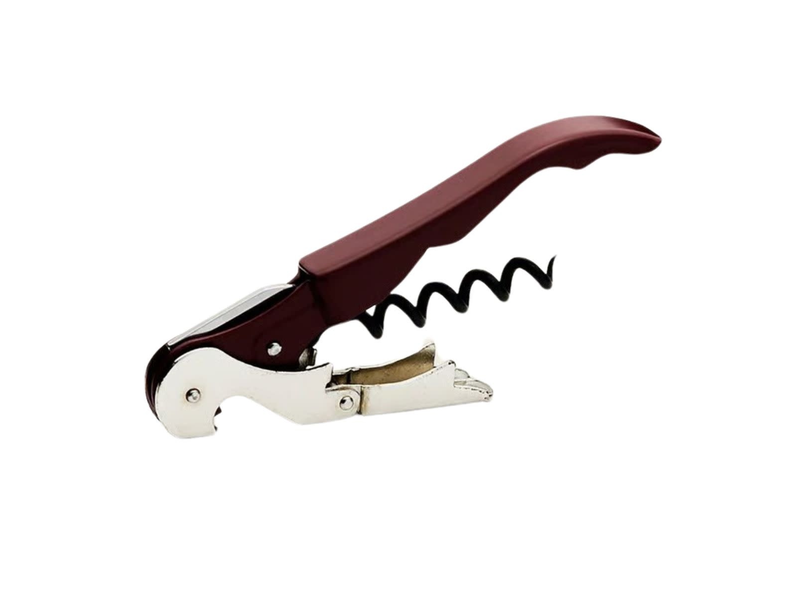 Het heft van deze handige kurkentrekker van Pulltex is bordeaux kunststof.