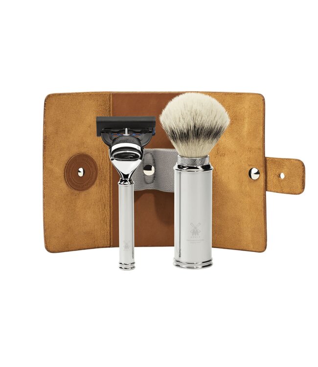 Muhle reisscheerset met silvertip fibre reisscheerkwast en Gillette® Fusion5™ scheerapparaat