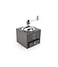 De behuizing is gemaakt van chocoladekleurig hout, met details geïnspireerd op jachtlieren, en de zwengel, dop en hendel zijn gemaakt van roestvrij staal.