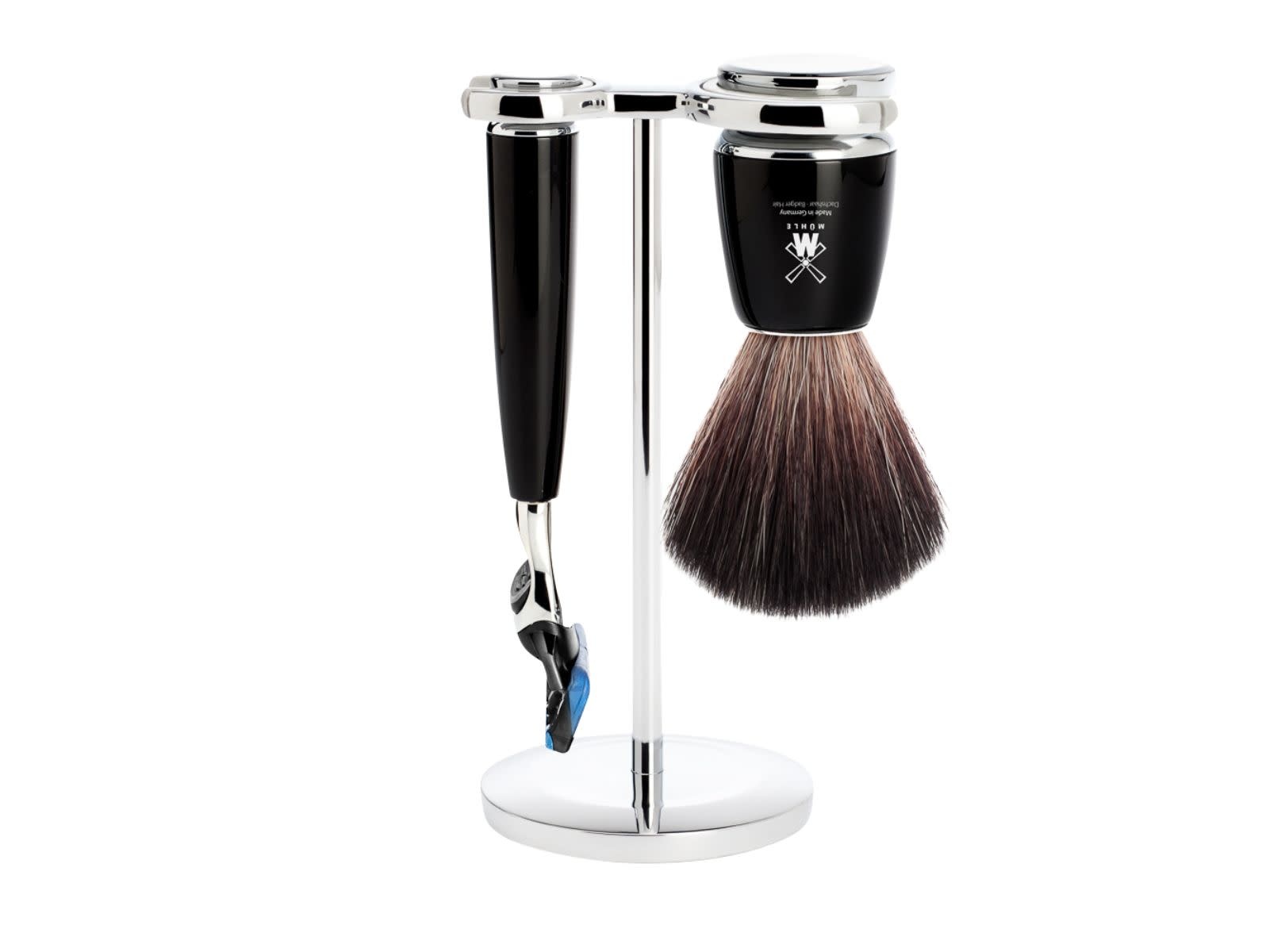 Muhle Rytmo scheerset in zwart edelhars - Gillette® Fusion5™ - kwast black fibre
