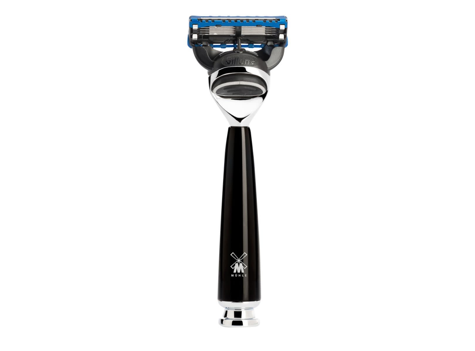 Muhle Rytmo scheerset in zwart edelhars met Gillette® Fusion5™ scheermes en synthetische kwast (black fibre®)
