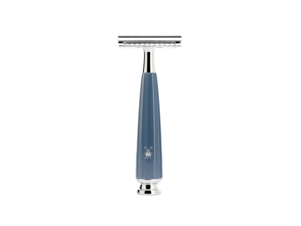 Muhle Rytmo scheerset in blauw edelhars - safety razor - kwast black fibre