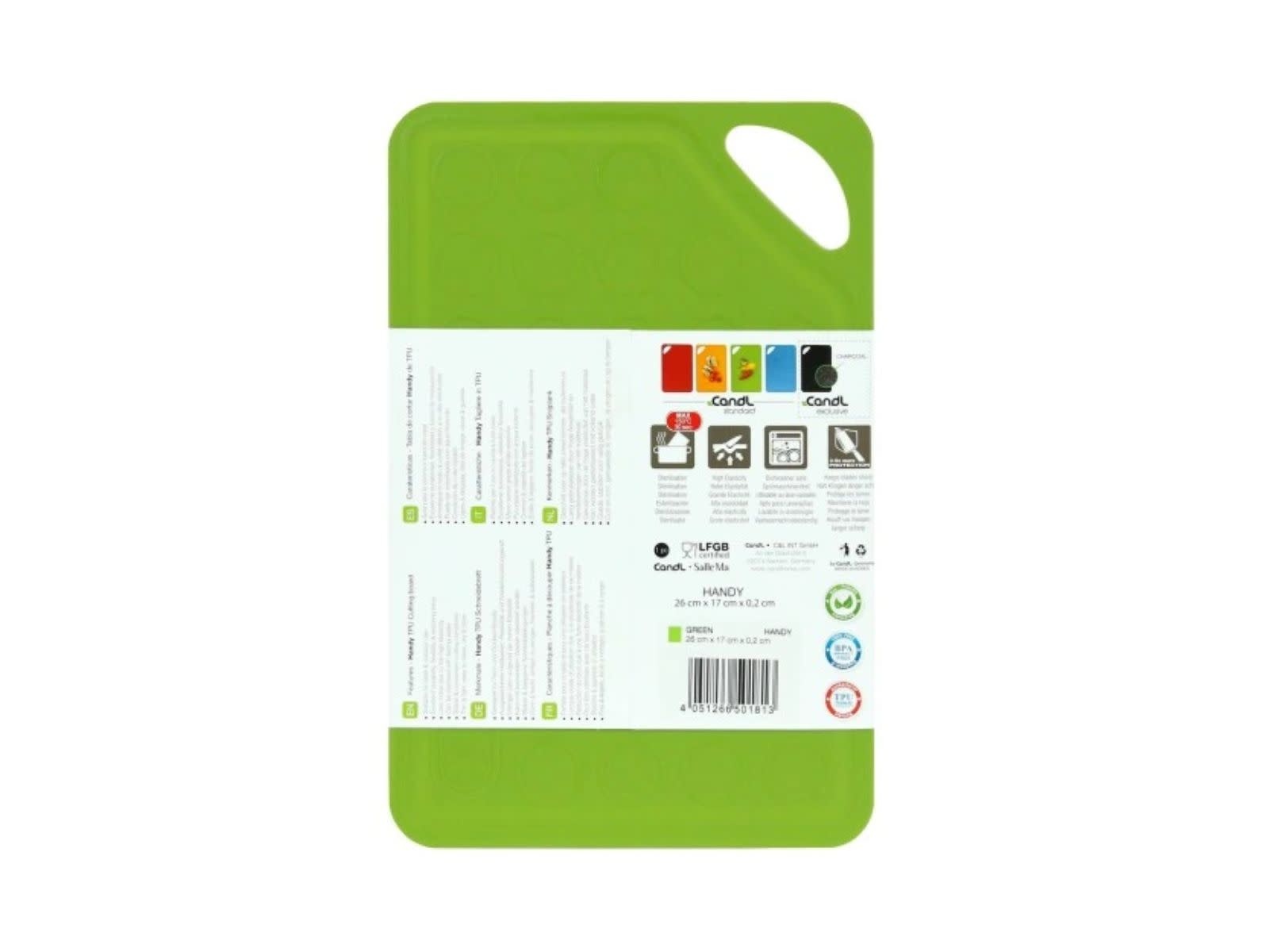 Candl anti-bacterieel groen snijplankje/matje, gemaakt van thermoplastisch polyurethaan (TPU), bijzonder flexibel en resistent.