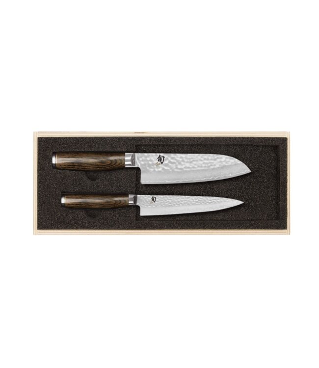 Kai Tim Malzer messenset (TDMS-230) met universeelmes (16,5cm) en santoku mes (18cm). Deze messenset is ideaal voor koks die houden van Japanse topkwaliteit. Deze set staat garant voor comfort, precisie en stijl in de keuken. Lees meer.