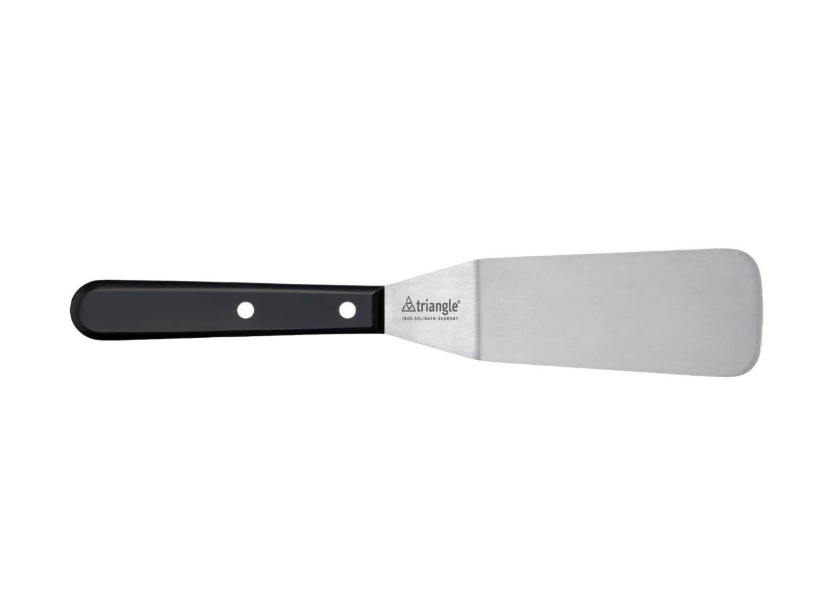 Dit schuine paletmes van 12 cm van Triangle heeft uiteenlopende functies. Het is een handige keukenhulp die je helpt om bereidingen die vast blijven hangen aan bakpapier e.d. makkelijk los te krijgen, of om voedingswaren te verplaatsen. Bovendien is het palet roestvrij, vaatwasmachinebestendig en erg flexibel. Het staal is geschuurd en met de hand geslepen en het palet beschikt ook over een handig heft van kunststof. Ideaal kookmateriaal voor elke amateur- of professionele kok!