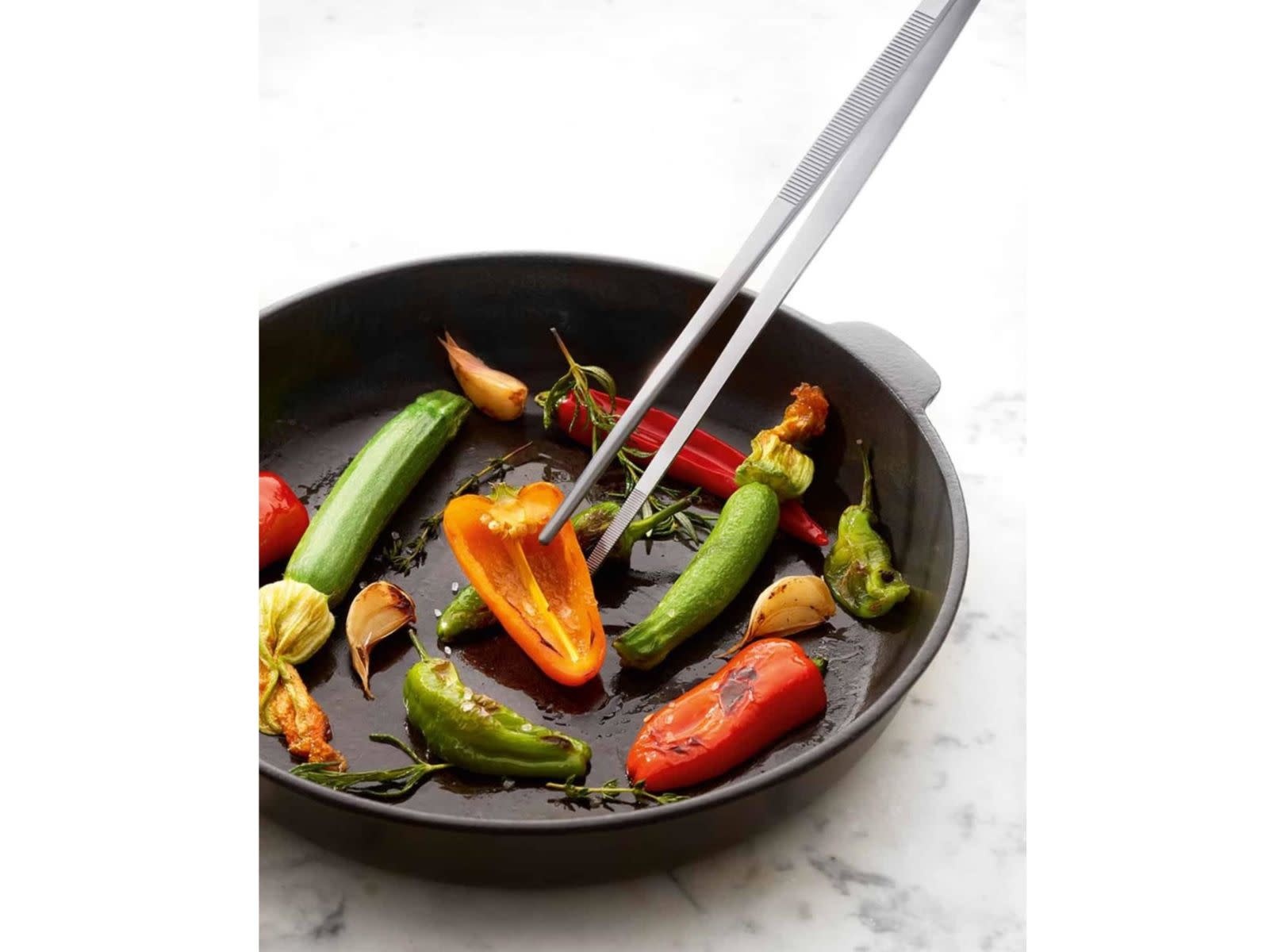 Met deze lange serveerpincet kan je (feest)borden gemakkelijker dresseren. Nooit meer klungelen met mes en vork, deze lange pincet zorgt ervoor dat je elk stukje vis of vlees met stijl van het vuur naar het bord kan overhevelen. Maak indruk op je gasten door hun borden te dresseren zoals chefkoks dat doen in hun sterrenrestaurant en breng de gastronomische ervaring tot in je eetkamer!
