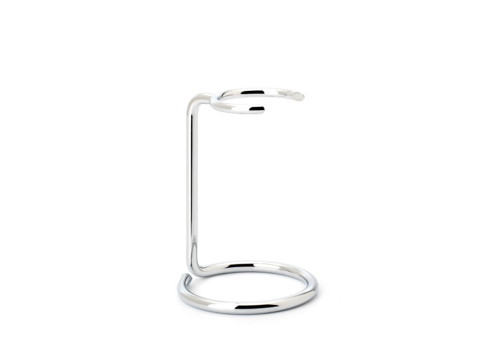 Discrete, verchroomde metalen houder, geschikt voor ronde scheerkwasten met een ringmaat van 21 mm en 23 mm. Reisscheerkwasten zijn uitgesloten.