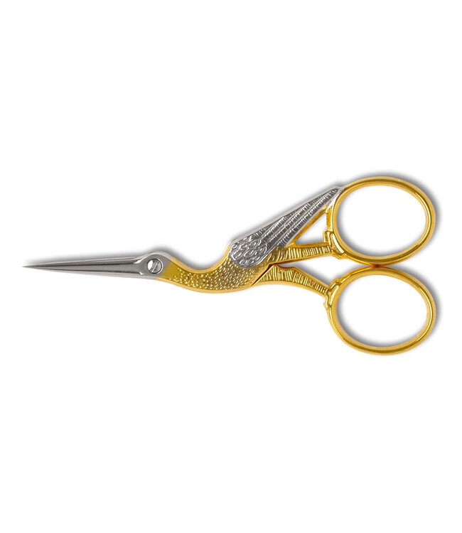 De Messenwinkel vergulde borduurschaar met ooievaarmotief - 9 cm