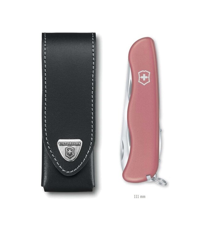 Zwart lederen tasje met velcrosluiting. Kan aan broeksriem gehangen worden. Voor langere Victorinox zakmessen en voor Swiss Tool.