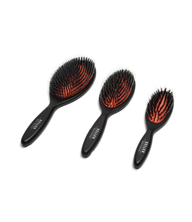 Stevige en kwalitatieve kleine vinyl haarborstel van Keller om de haren mee te borstelen. Lees meer.