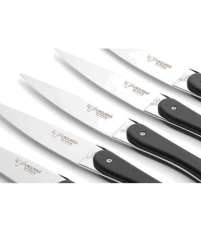 Luxe opbergdoos met 6 steakmessen van Laguiole en Aubrac in paperstone.