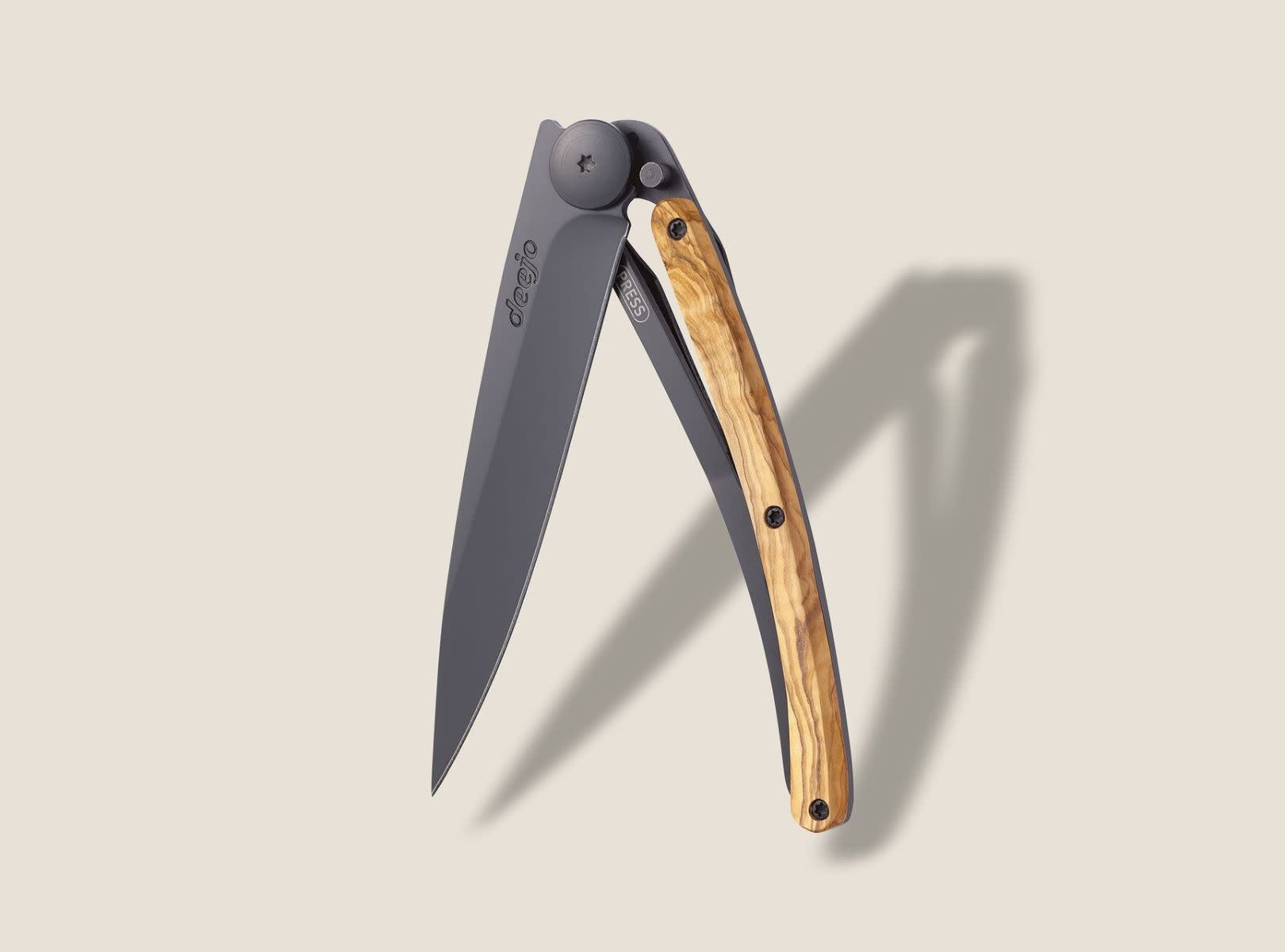 Deejo zakmes 27g - olijfhout - matzwart titanium