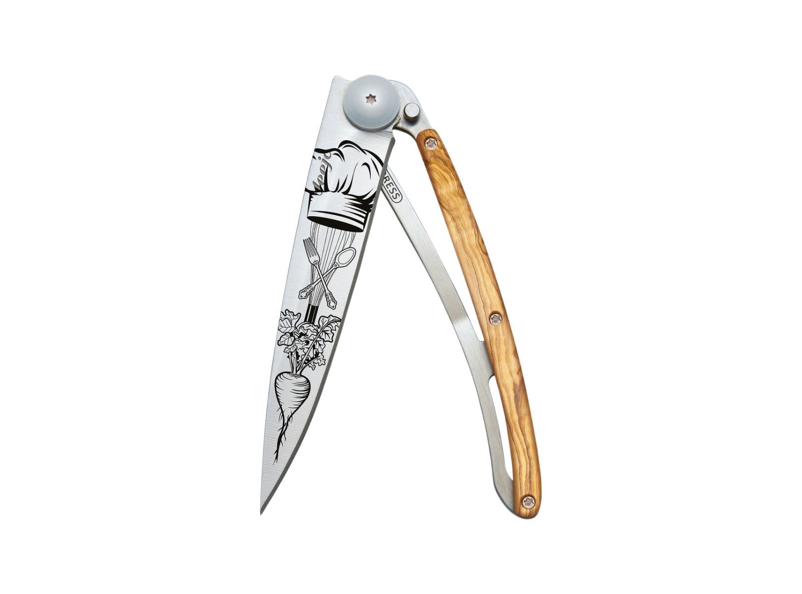 Deejo zakmes 37g - Chef - olijfhout - titanium