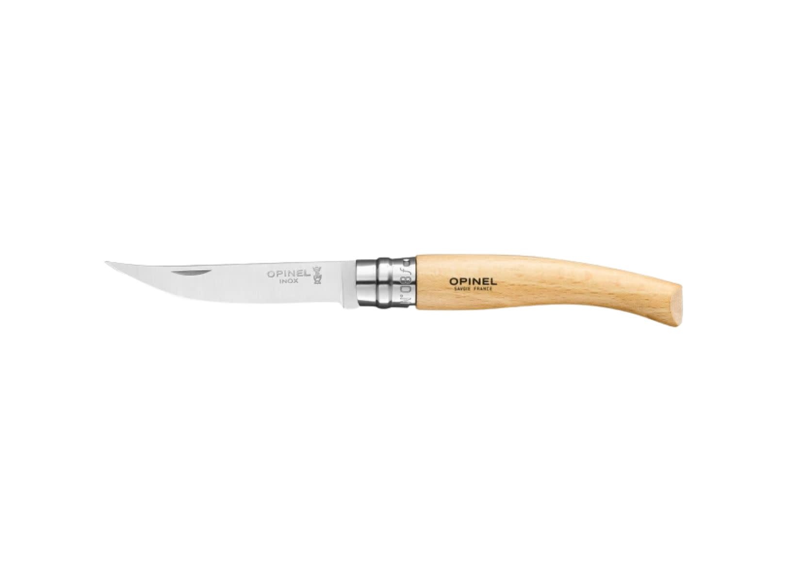 Dit Opinel N°08 zakmes is uiterst elegant en heeft een heft van effilé beukenhout. Het zakmes kan voor zeer uiteenlopende activiteiten worden gebruikt.