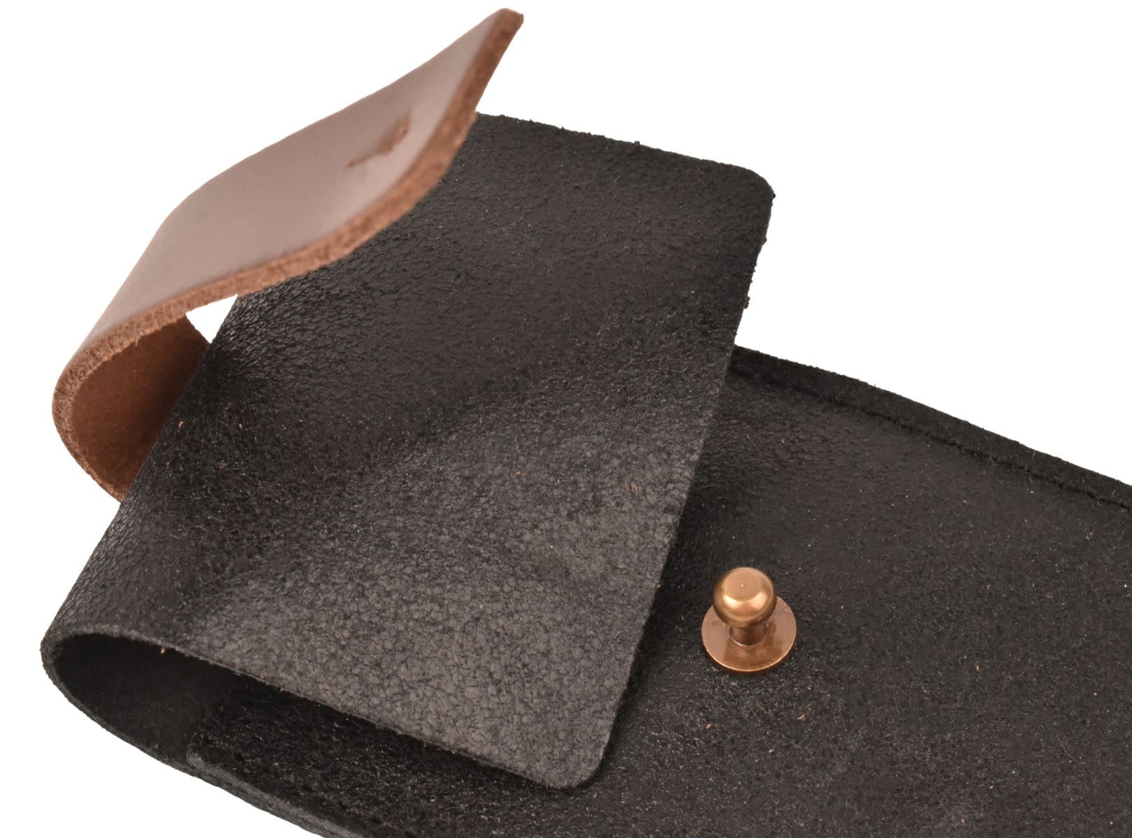 Berg je zakmes veilig op in deze universele zakmeshouder in zwart leder. Deze zakmeshouder kan aan een riem worden gedragen.